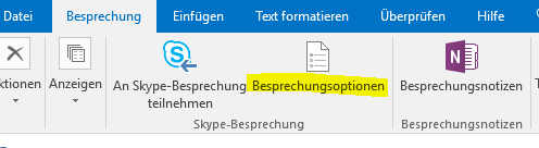 Über das darauf öffnenden Pop-Up der S4B-Besprechung, können Sie auf die Meeting-Optionen zugreifen. Öffnen Sie „Besprechungsoptionen“.