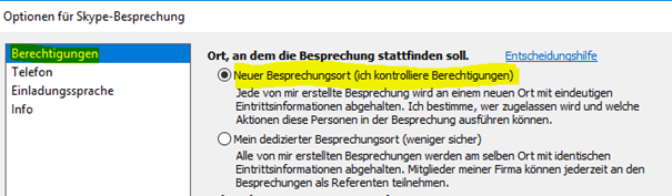Bei nicht optimierter Konfiguration dazu kommen, dass sich ungewollt verschiedene Meeting-Teilnehmer in einer Besprechung treffen bzw. beitreten.